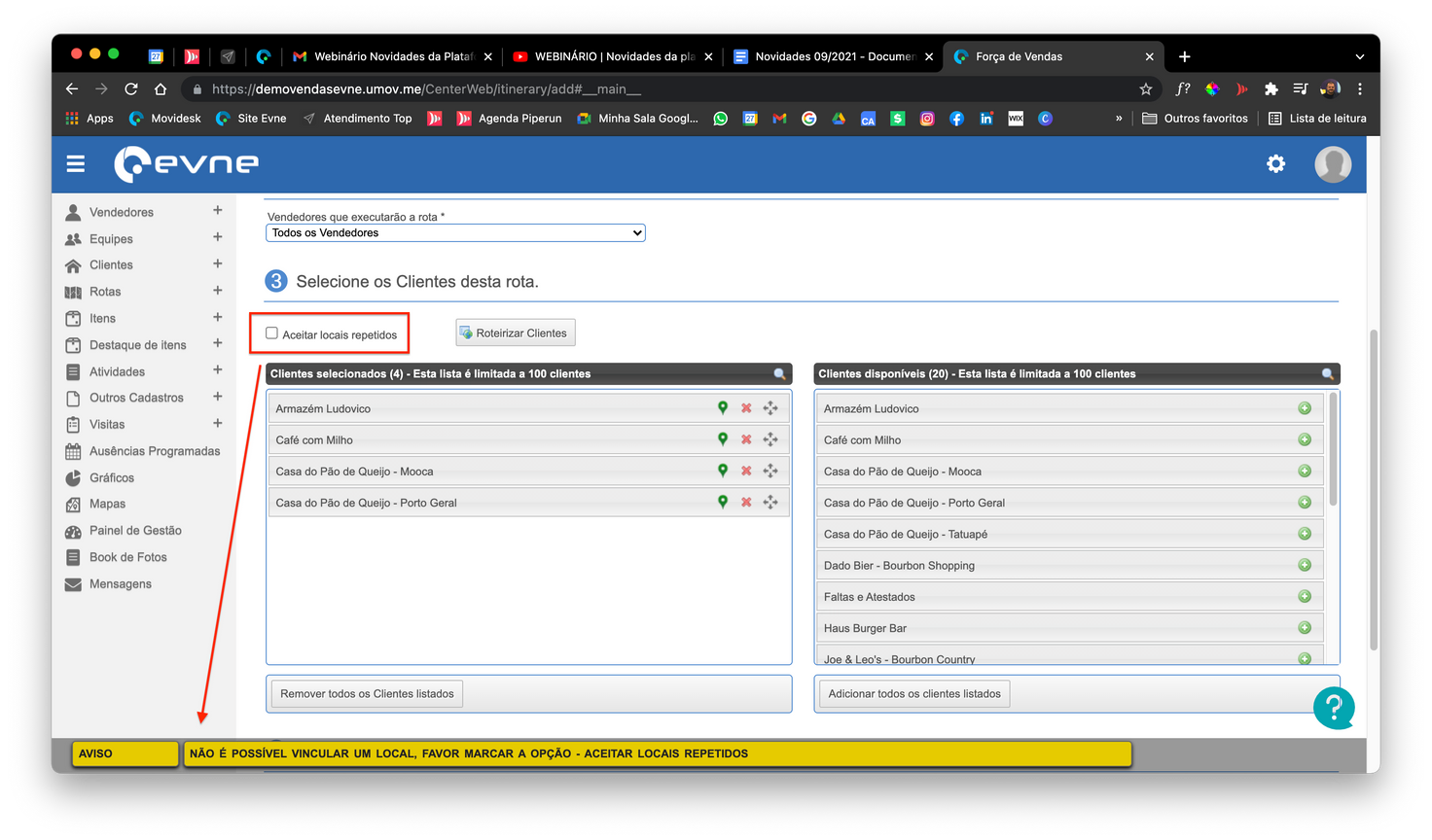 1. [Rotas] Permitir ou bloquear Locais repetidos em rotas.